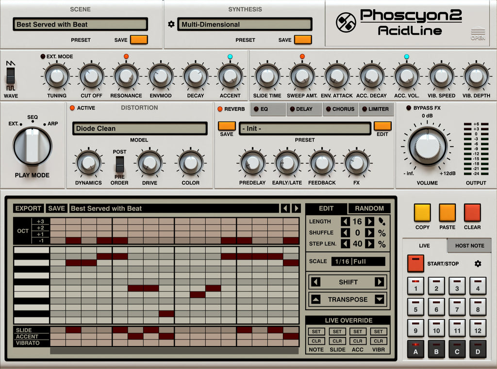 Phoscyon 2 emulates the TB-303 with acid basslines, real-time modulation, and advanced filter control.