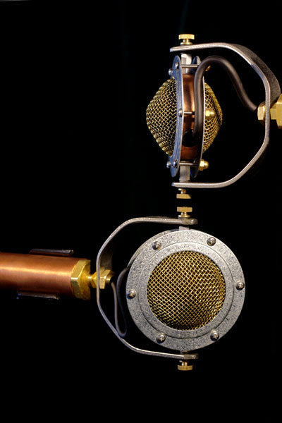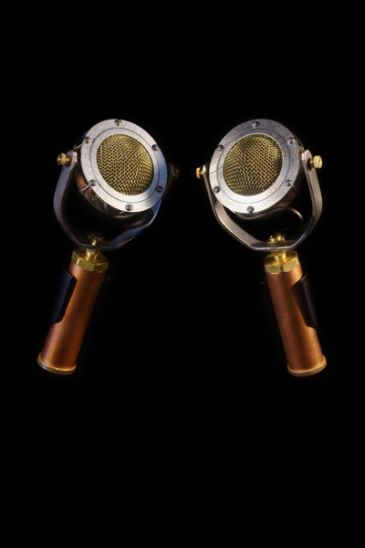Closely matched stereo pair of Edwina, our flagship, most flexible model, a versatile large-diaphragm condenser microphone with the smooth sound to match her distinctive but not dominating looks.