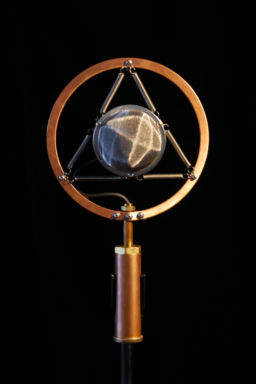 Large-diaphragm condenser microphone spring-suspended in a large, elegant copper ring. Tuned for live performance use, ideal for micing small acoustic ensembles.