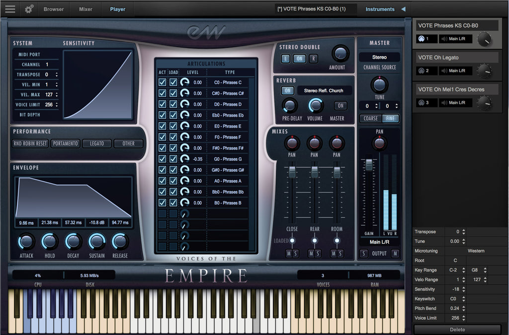VOICES OF THE EMPIRE requires PLAY 6 (including a new instrument search database and other new features), which is compatible with all PLAY products, and is included free with your purchase or subscription.