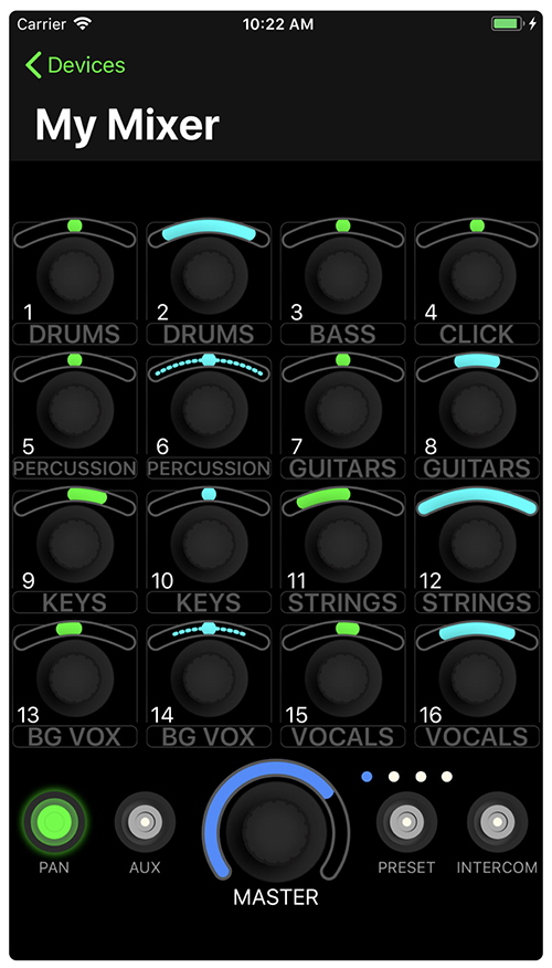 - Swipe left on any mixer in the list to reveal additional options (including grouping control)