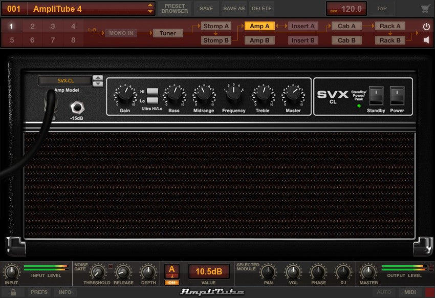 The AmpliTube Custom Shop is a free software package for your Mac or PC that includes a complete guitar dual signal chain; tuner, pedalboard, amplifier, cabinet, microphone and rack effects section. It comes with 24 pieces of gear and access to our unique online virtual music store where you can purchase the AmpliTube SVX models either a-la-carte or as a complete collection. You can even create almost any rig you can dream up combining AmpliTube SVX with the universe of gear available to try or buy in Custom Shop.