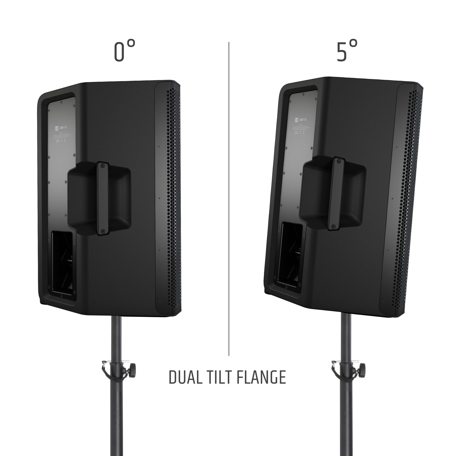 Thanks to its shock-resistant front grille and ideal 55° tilt angle make the ICOA 12 outstanding as a floor monitor. Placed vertically, the 36 mm dual tilt stand attachment offers the choice of a 0° or 5° tilt angle for optimally adapting the system to the local acoustic environment. Extensive and smart accessories for installation and transport are optionally available. Four aluminium handles with an ergonomic rubber surface provide optimal grip when carrying the speaker.