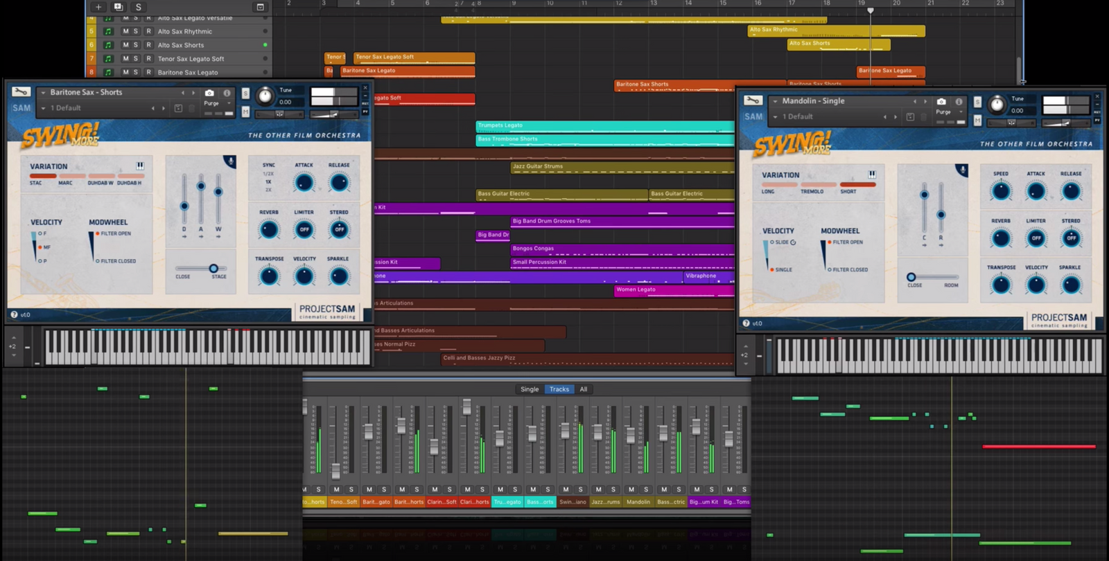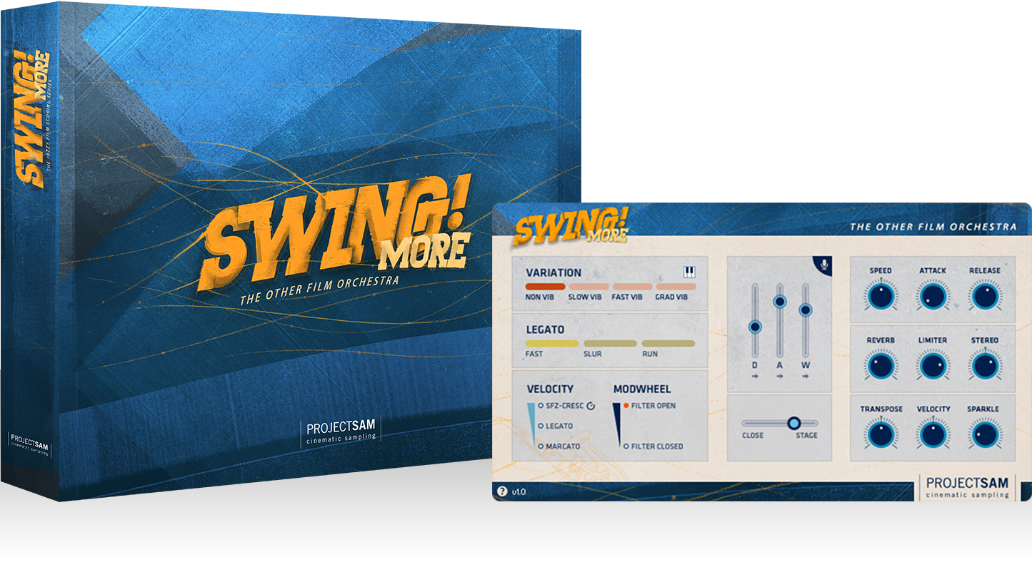 We’ve never packed more instruments into a single library: solo saxes, jazzy clarinet, full big band chords, drums, basses, jazz guitar, piano, strings, vibraphone, small percussion – 100% new content, all blending perfectly. Meet the other film orchestra.