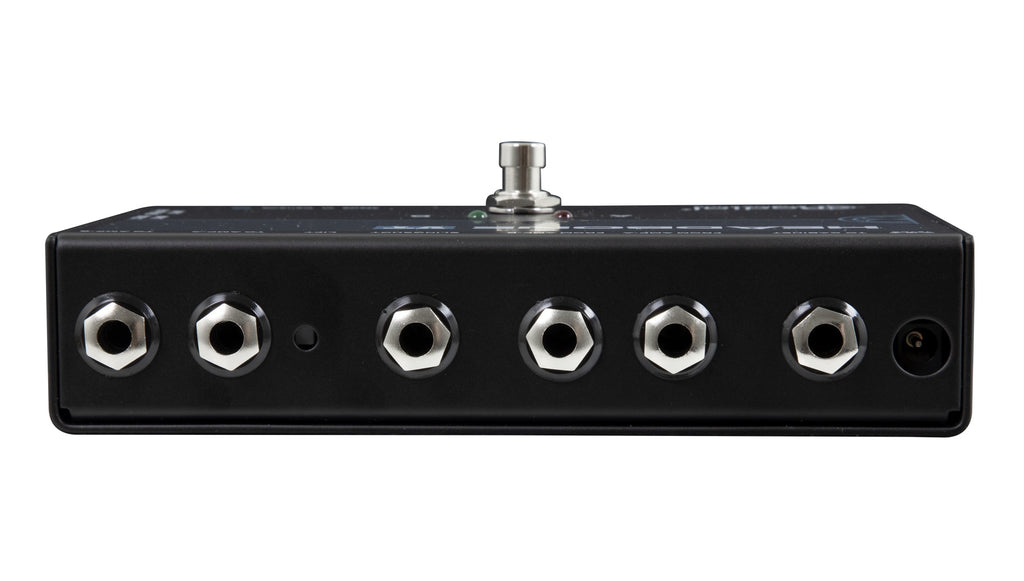 With the Headbone in your rig, you can access your choice of amplifier with a single footswitch, giving you the ability to easily select between one amplifier for rhythm, and another one for solos. To eliminate long cables running across the stage, you can switch the Headbone remotely with a Slingshot input that allows you to connect any standard footswitch or MIDI controlled contact closure, further streamlining your setup on stage. For the ultimate amp-switching rig you can combine the Headbone with the Tonebone Twinline, which will allow you to switch your effects loop at the same time, so your effects pedals follow the active amplifier.