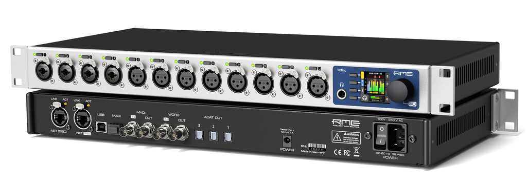 The RME 12Mic-D features twelve microphone and line level inputs with digital, no-compromise, studio-quality conversion; remote controllable gains; integrated MADI and Dante connectivity; plus a multitude of additional functionality, designed for use in high-end studio recording, live audio, and location sound and music recording.