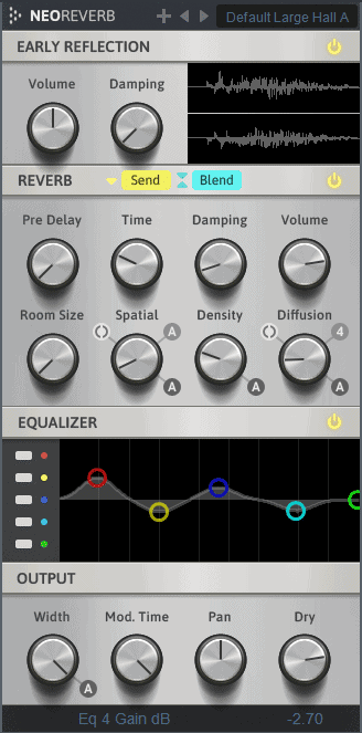 Neo Reverb also features a powerful modulation system helps to achieve a dynamic and live sound.