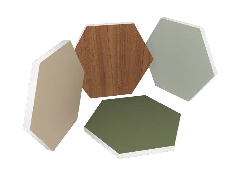 Introducing three new collections to our well-known Vixagon VMT, the hexagonal-shaped acoustic panel. Having 4 different colours or patterns in the same box will help to have more design versatility, allowing the creation of endless shapes on walls and Ceilings.