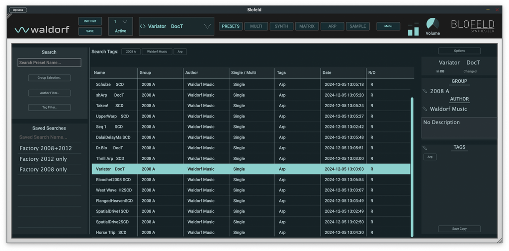 - Custom preset format supporting tags, sound groups, author and comment attributes