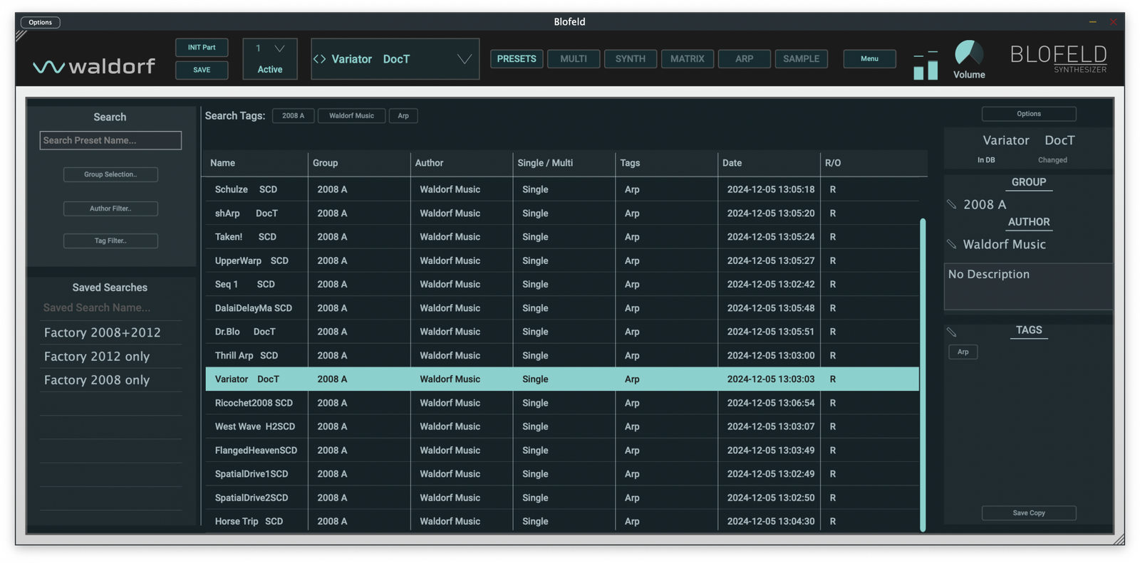 - All factory presets from the 2008 and 2012 banks included