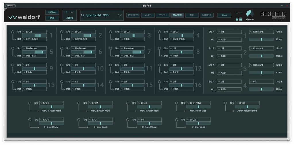 - Modulation Matrix with 16 slots To modulate almost any parameter from a wide range of sources