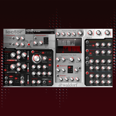Lector is a vocoder with superior intelligibility and performance. The 100 band stereo vocoder core is flanked by a synthesizer section on the left and a rich effects section on the right. The intensities of up to 100 frequency bands in the analysis section control the same number of stereo bandpass filters in the synthesis filter bank using envelope followers with adjustable attack and decay. The integrated synthesizer or an external source serves as carrier signal and is fed into the synthesis filter bank. Besides the effects section, there are numerous features that make this vocoder unique. Robot voices, whispering strings, talking drum loops, rhythmic pads, the resonant ringing of bells, dripping water – the possibilities are all but infinite. With a quick tweak here and there, the Lector turns any incoming signal into novel sounds and effects. Tremendously versatile, the Lector puts in your hands a sonic toolset for a wide range of diverse applications. Just about anything goes, from distorting the human voice to adding subtle harmonies to lead vocals and getting creative with movie soundtracks.
